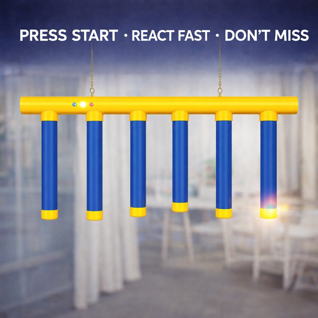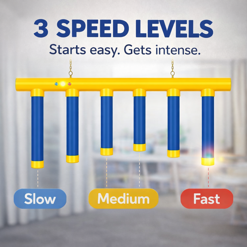 Hang it up, press start and try to catch the falling rods before they hit the ground. Simple and super fun!